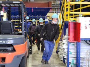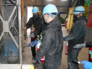 令和7年11月10日、工場で火災が発生したことを想定した避難訓練、通報訓練、消火訓練を行いました。